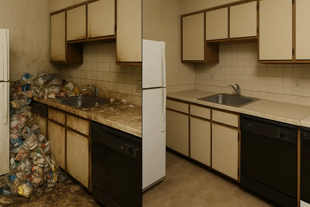 Zabezpieczamy teren, selekcjonujemy i pakujemy mienie, usuwamy odpady do licencjonowanej utylizacji. Wykonujemy dezynfekcję/odkażanie, neutralizację zapachów oraz sprzątanie końcowe. Po zakończeniu przekazujemy protokół z czynności, dokumentację zdjęciową oraz – na życzenie – certyfikat sanitarny. Omawiamy efekty na miejscu i udzielamy wskazówek dotyczących dalszych działań (np. wietrzenie, prace remontowe).